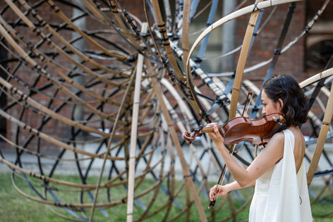 A collaboration between leading architect Kengo Kuma, smartphone brand OPPO and Musicity, the international agency for music and architecture, Midori composed a multichannel installation for Kengo Kuma's Bamboo Ring, based on the theme of “creative connections” in the courtyard of the Cortile dei Bagni for Milan Design Week 2021.